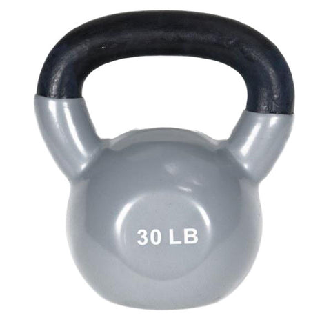 Working out with kettlebells can improve your strength, stamina, and fitness. Burn calories and get in shape with this cast iron bell, encased in vinyl to help reduce noise and prevent damage to floors. The smooth, solid steel handle offers a comfortable grip and measures 1-inch in diameter on all kettlebells. Each kettlebell is color coded by weight; this 30lb kettlebell is grey in color.