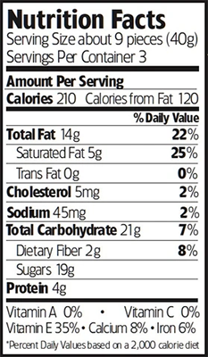 These decadent almonds have a layer of rich chocolate around the roasted almond, surrounded by a layer of buttery toffee, and finished with a dusting of powdered sugar.
