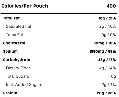 A blend of tender diced beef, carrots, peas, and potatoes are sure to give you that warm, fuzzy feeling of satisfaction. Ideal for warming up in the backcountry.