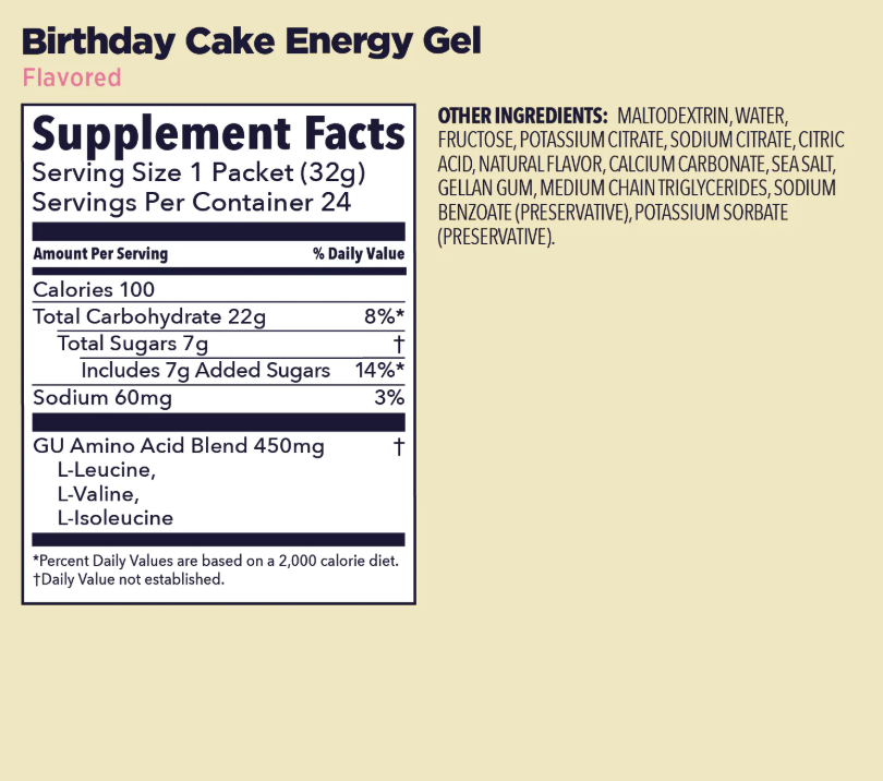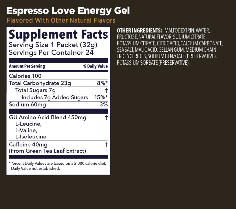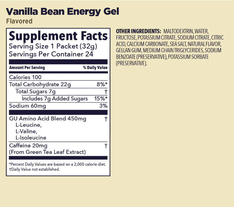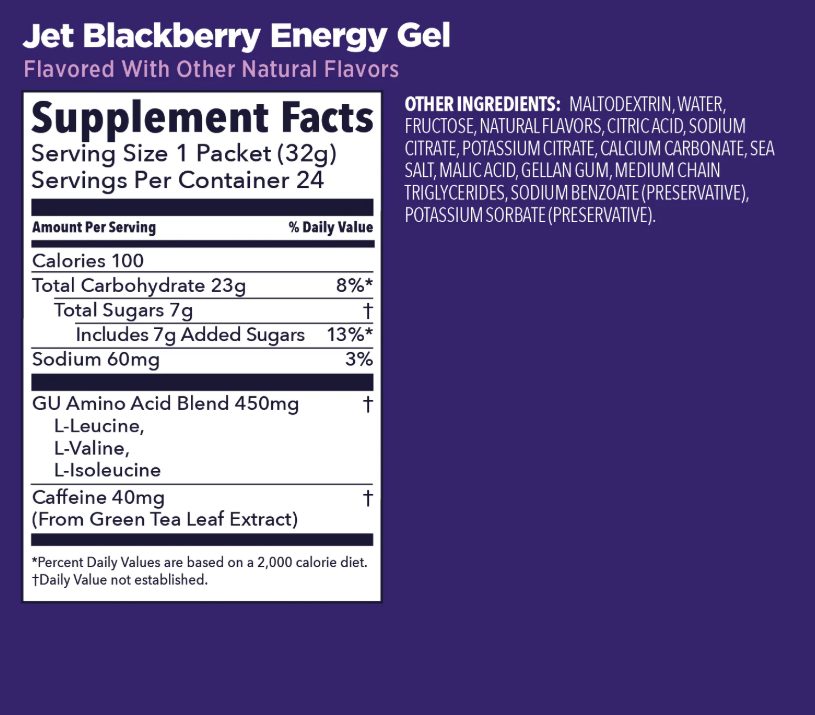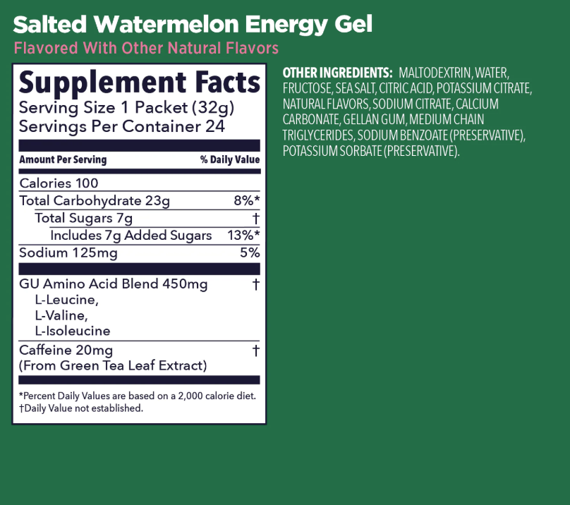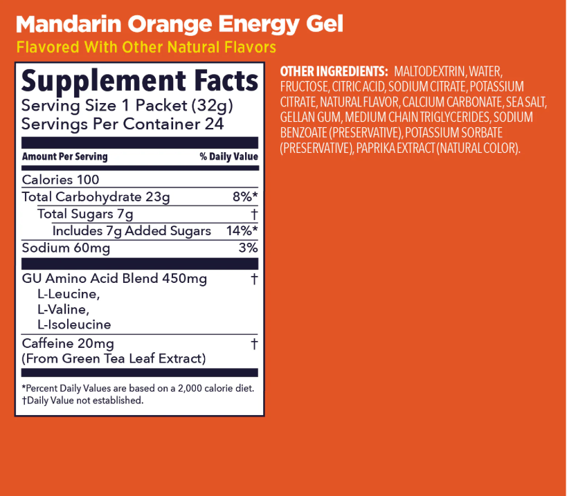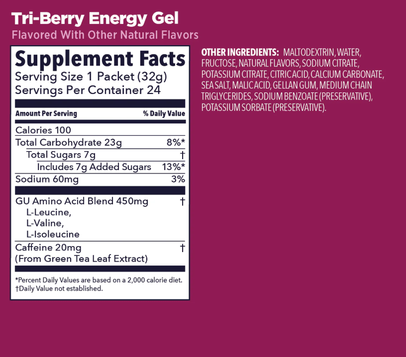 GU Energy Gel is your go-to source for clean, fast energy during activity. With a mix of simple and complex carbs, electrolytes, and amino acids, it helps you stay energized, focused, and ready for whatever comes next. Designed for convenience, it’s easy to take, easy to digest, and made to support performance at any level.