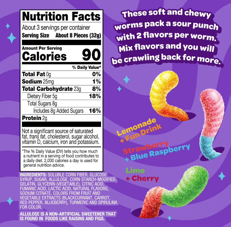 These soft and chewy worms pack a sour punch with 2 flavors per worm. Mix and match flavors and you'll be crawling back for more. This is low sugar candy that’s actually better for you. Because here’s the thing: when you cut out the sugar, you have to replace it with something. For most, those are artificial sweeteners and unpleasant sugar alcohols. For Joyride, it’s an alchemy of better-for-you ingredients that are all natural and non-GMO.