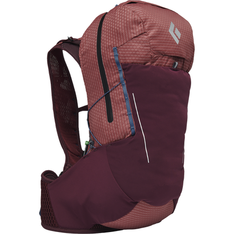 Bagging more than one summit in a day? The Women’s Pursuit 30 Pack will keep you moving light and fast, peak after peak. With a harness design inspired by the Distance series, Pursuit Daypacks are built with a custom “BD Continuous Fit Harness” with a seamless “wing” body construction that contours to the body for maximum comfort on the move. A women’s specific fit in the shoulders, chest, and hips ensures all-day comfort. The quick pull compression system adjusts depending on your load. With quick access side pockets and easy access trekking pole storage, snacking and stashing is easy on the move. Pursuit Daypacks are made from 100% recycled body fabrics with a breathable back panel. The pack includes an external hydration storage pocket.